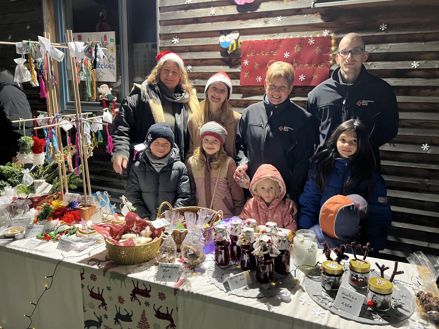 Im Garten der Betreuungseinrichtungen an der Sesamstraße hatten die beiden Hort-Leiterinnen Andrea Bauer und Melanie Papp mit ihren Teams die Verpflegung mit Bratwürsten vom Grill, Kinderpunsch, Glühwein und frisch gebackenen Waffeln organisiert. Die Teams beider Horte hatten sich enorm ins Zeug gelegt und Plätzchen gebacken, Marmeladen eingekocht, Kränze und Gestecke dekoriert und natürlich mit den Kindern fleißig gebastelt – alles zum Verkauf für den guten Zweck. Der Erlös aus dem Adventsmarkt fließt in die Aktion „Kinder für Kinder“. Diese besteht seit fast 30 Jahren und ermöglicht Kindern aus einkommensschwachen Familien einen Volksfestbesuch. In einer speziellen Weihnachtsfeier werden 150 Kinder mit ganz individuellen Geschenken bedacht. Angelika Gumowski, stellvertretende BRK-Kreisvorsitzende und Beauftragte der Gemeinschaft Wohlfahrts- und Sozialarbeit, und Stefan Tezner, der die Aktion „Kinder für Kinder“ betreut, freuten sich über die vielen schönen Weihnachtssachen und den zahlreichen Besuch der Familien. „Es ist toll, dass wir auf diese Weise unterstützt werden“, so Stefan Tezner. Angelika Gumowski betonte: „Diese Aktion erfüllt vorbildlich unseren Leitsatz ‚Kinder für Kinder‘, der auch an diejenigen denkt, die weniger zur Verfügung haben.“