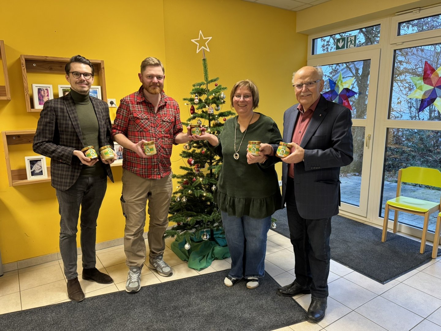 Markus Weigl, Rotkreuzler im Kreisverband Dachau, ist in dritter Generation Imker. Bei der diesjährigen Honigprämierung des Landesverbandes Bayerischer Imker wurde sein Honig aus mehr als 500 abgegebenen Honig-Proben mit der Goldprämierung ausgezeichnet. Nun spendete er zwölf Gläser an den BRK-Integrationskindergarten „Regenbogen“. Die Kindergarten-Leiterin Irene Mohl berichtete, dass die Kinder schon einige Male mit Markus Weigl im Bienenhaus waren und sich die Arbeit eines Imkers erklären ließen. Markus Weigl betonte: „Bienen sind lebenswichtige Tiere, weil sie als Bestäuber eine Schlüsselrolle in unseren Ökosystemen spielen. Darüber hinaus möchte ich mit der Honigspende den Kindern die regionalen Produkte aus Altomünster näherbringen.“ Anwesend war auch der Bezirkstagspräsident a.D., Josef Mederer, der in Altomünster lebt. Er freut sich über heimische Imker, die für die hohe Qualität des Honigs ausgezeichnet werden. Mederer sagte: „Wir brauchen flächendeckend Bienenvölker. Bienen sind wichtig für den Kreislauf des Lebens.“ Als engagierter Rotkreuzler findet er besonders schön, dass auch Rotkreuzeinrichtungen mit diesem ausgezeichneten Honig beschenkt werden.