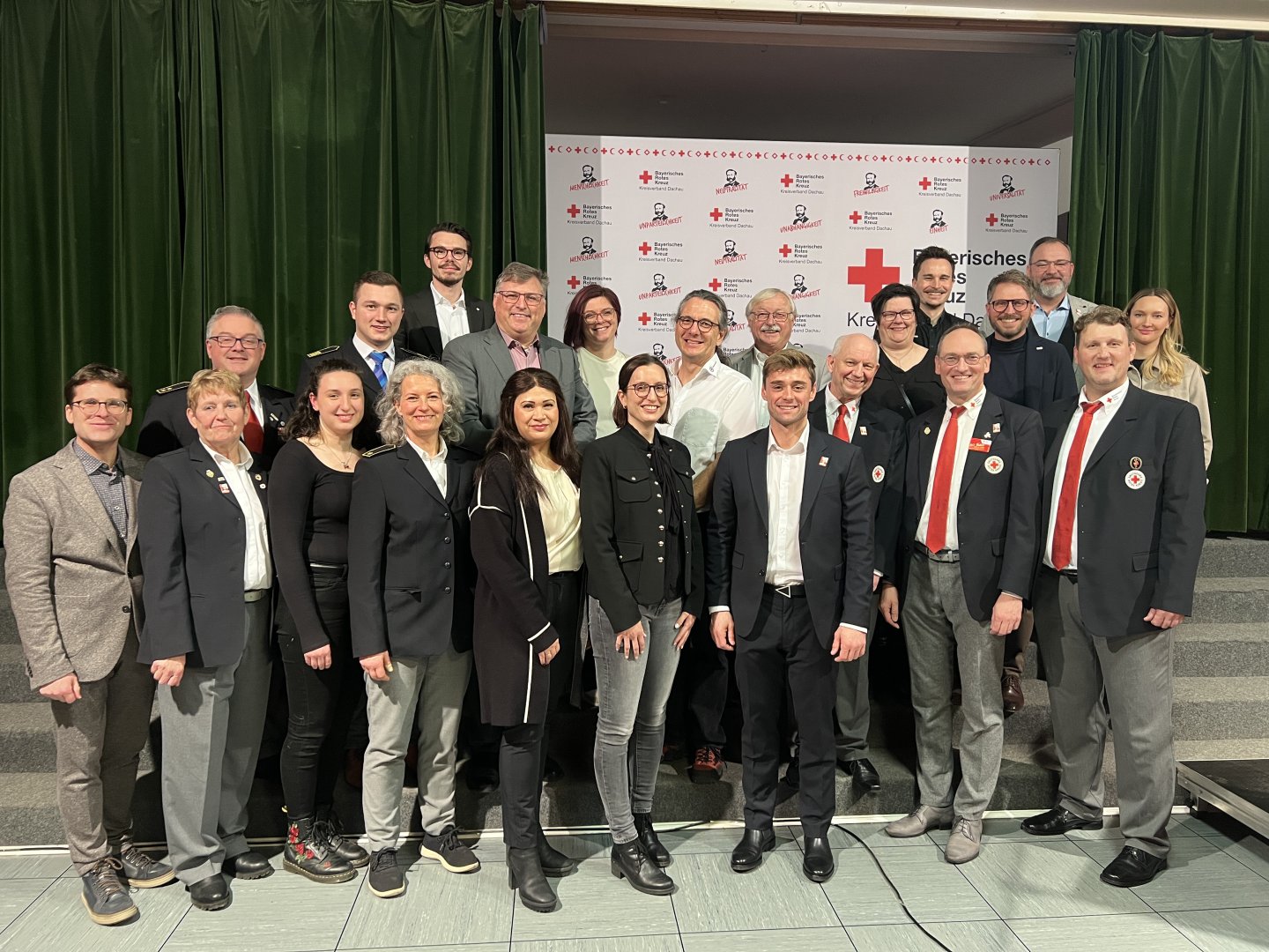 Mit einem Neujahrsempfang für die ehrenamtlichen Helferinnen und Helfer bedankte sich der BRK-Kreisverband Dachau für das unentgeltliche Engagement das ganze Jahr über. Rund 80 Ehrenamtliche aus den Bereitschaften, aus der Wohlfahrts- und Sozialarbeit, dem Jugendrotkreuz und der Wasserwacht waren der Einladung in den Rotkreuzsaal gefolgt. Unter den Gästen waren auch Landrat Stefan Löwl und Oberbürgermeister Florian Hartmann. Der BRK-Kreisvorsitzende Bernhard Seidenath bedankte sich bei den engagierten Kameradinnen und Kameraden und ihren Leitungskräften. Er resümierte über ein erfolgreiches vergangenes Jahr, in dem die Kooperation mit dem Kreisverband Fürstenfeldbruck sich bereits jetzt bewährt und einen Meilenstein gesetzt habe. Die Einführung des neuen Rettungseinsatzfahrzeuges REF sei ebenfalls eine zukunftsführende Entwicklung und die Revolution des Rettungsdienstes. „Wir wollen unseren Kreisverband auch in den nächsten Jahren gut voranbringen“, so Seidenath. Die Arbeitsgruppe Historisches Erbe wurde 2025 ausgebaut und das BRK Dachau verfüge nun nach dem Rotkreuz-Archiv in Berlin über das zweitbeste BRK-Archiv in Deutschland. Eine weitere erfreuliche Entwicklung sei der erstmalig mit dem Roten Kreuz in Fondi geschlossene Partnerschaftsvertrag sowie die Tagespflege in Altomünster, die im Mai eröffnet werden wird, so Seidenath. Der BRK-Kreisgeschäftsführer Dennis Behrendt skizzierte in seinem Vortrag, was im BRK-Kreisverband Dachau 2025 erreicht wurde: 26.000 Einsätze und 725.000 gefahrene Kilometer im Rettungsdienst, 1.140 neue Fördermitglieder, 934 Betreuungsplätze in den zehn Kitas und mehr als 5.000 Kursteilnehmerinnen und -teilnehmer im BRK-Bildungszentrum. Erfreuliche Zahlen nannte Dennis Behrendt auch für den Hausnotruf mit 1.250 Kunden und 835 Fahrten im Betreuten Fahrdienst. Er würdigte die Leistung der Gemeinschaft Wohlfahrts- und Sozialarbeit mit 2.200 ehrenamtlich geleisteten Stunden im Glückshafen auf dem Dachauer Volksfest und den beiden Umzügen der Rotkreuzshops in Altomünster und Indersdorf in größere Räume. Die Wasserwacht konnte 200 medizinische Hilfeleistungen am Karlsfelder See verzeichnen. Und obwohl im Rettungsdienst das Personal Mangelware sei, sei es gelungen zwei neue Rettungs-Standorte und das REF zu gewinnen. „Darauf sind wir sehr stolz“, so Behrendt.