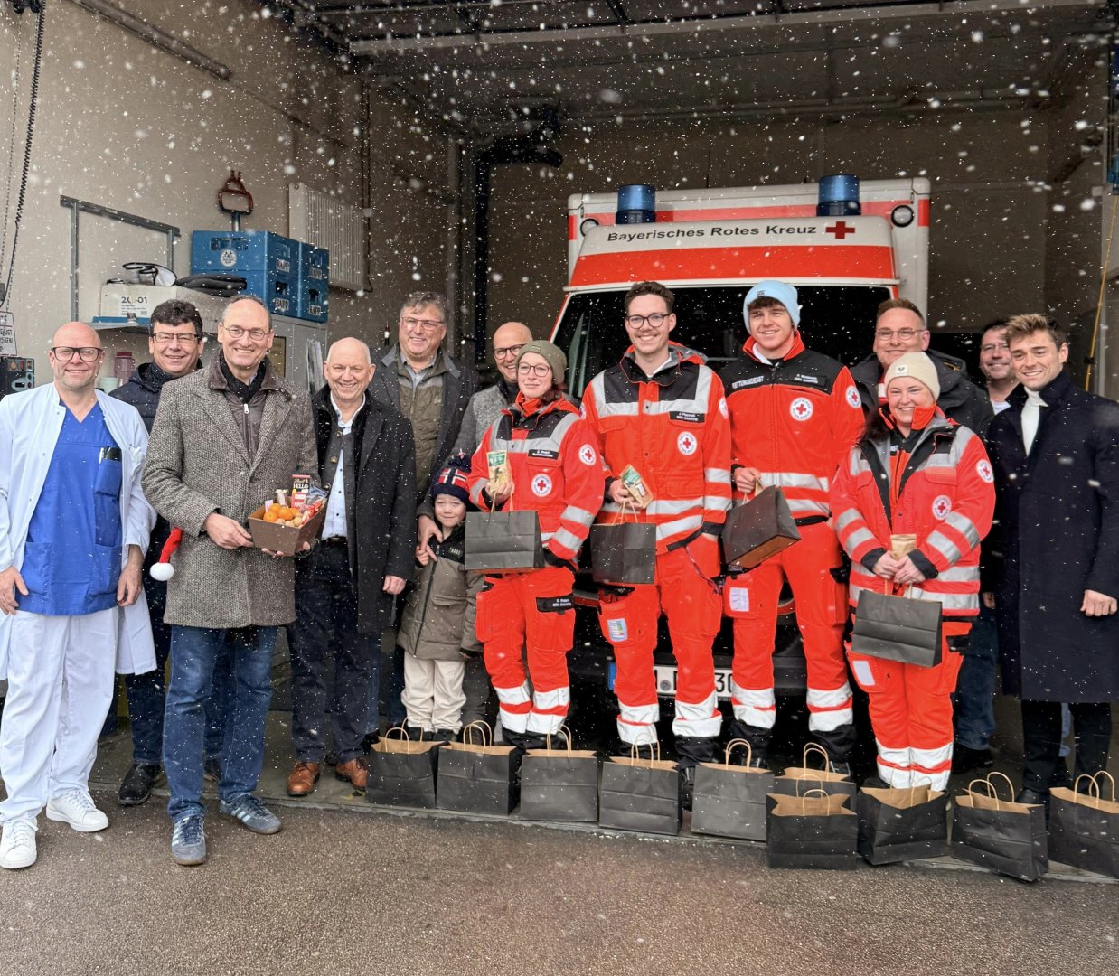 Der BRK-Kreisvorsitzende Bernhard Seidenath, Landrat Stefan Löwl, Bürgermeister Franz Obesser, der stellvertretende BRK-Schatzmeister und Marktgemeinderat Jörg Westermair, der stellvertretende BRK-Kreisgeschäftsführer Michael Schäfer sowie der stellvertretende Leiter Rettungsdienst, Christoph Adler, statteten an Heiligabend den Rettungskräften des BRK Dachau in der Rettungswache in Markt Indersdorf einen Besuch ab. Anwesend waren auch Chefarzt Dr. Björn Johnson und Ärztlicher Direktor Prof. Dr. Hjalmar Hagedorn vom Helios Klinikum.
